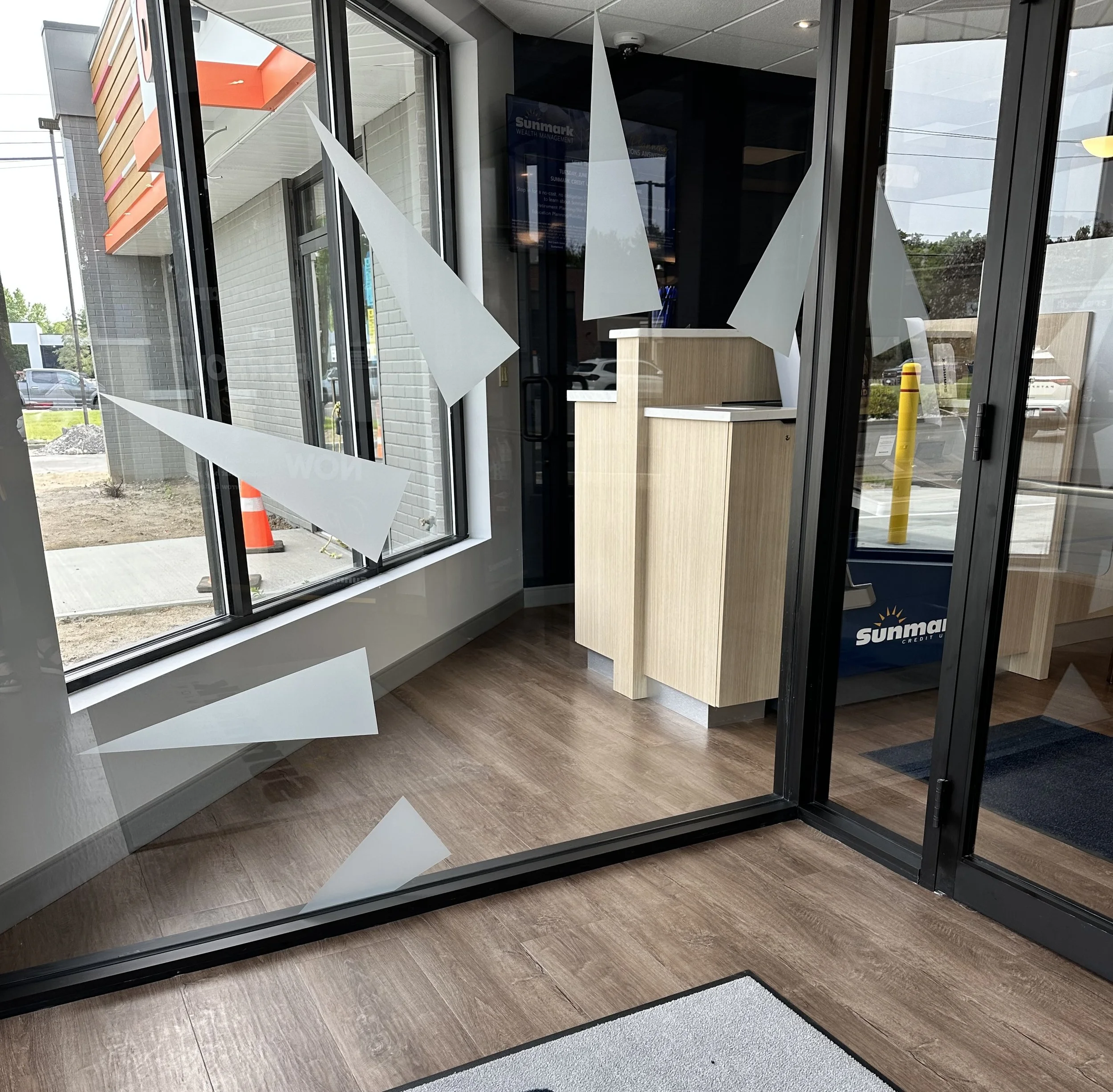 We recently installed printed privacy material for a newly constructed branch on Vly Road in Schenectady for the conference room windows and doors as well as the Managers offices.